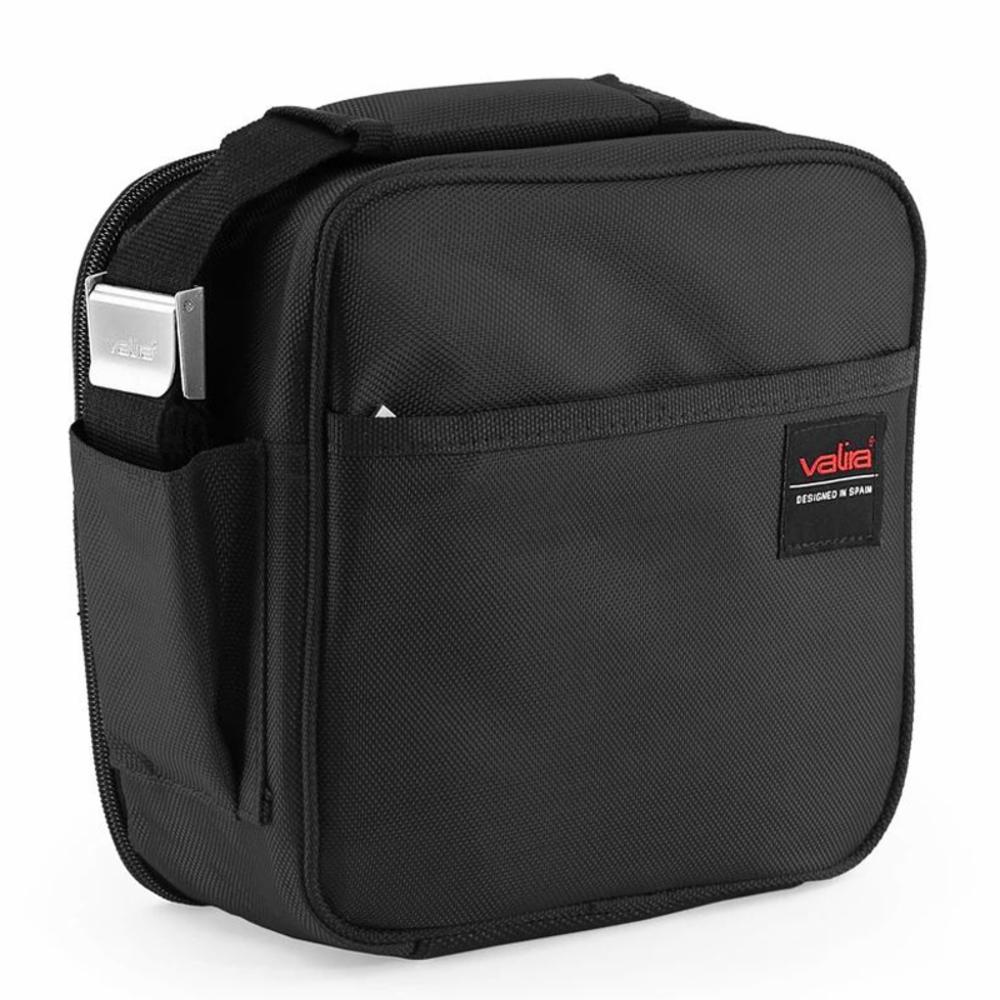 Bolsa flexible y ligera de diseño moderno, interior aislante, cinta colgadora extensible, bolsillo exterior, apertura total para mejor accesibilidad y limpieza.