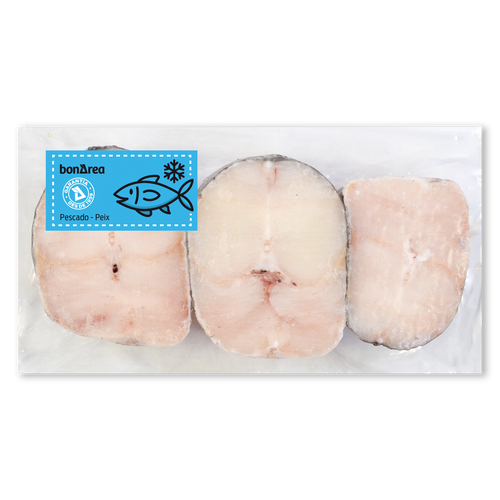 Merluza en rodajas con espina y piel, procedente de Sudáfrica y Namibia. Frente a otras merluzas se caracteriza por su suave sabor y textura.
