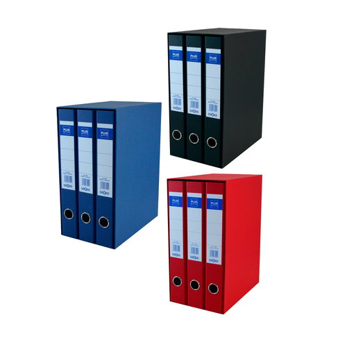 Módulo de 3 archivadores con tres anillas. El color dependerá de las existencias existentes en el momento de preparar el pedido.