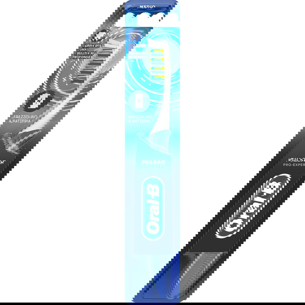 Este cepillo dental Oral B cuenta con filamentos especiales vibratorios que penetran entre los dientes y limpian en profundidad. Protege y limpia las encías. Con mango ergonómico. Dureza media. Limpia la placa con facilidad.