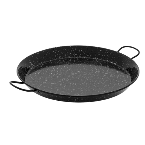 La paellera valenciana de acero esmaltado tiene el mismo uso que la paellera de acero pulido pero su limpieza y mantenimiento son más sencillos.