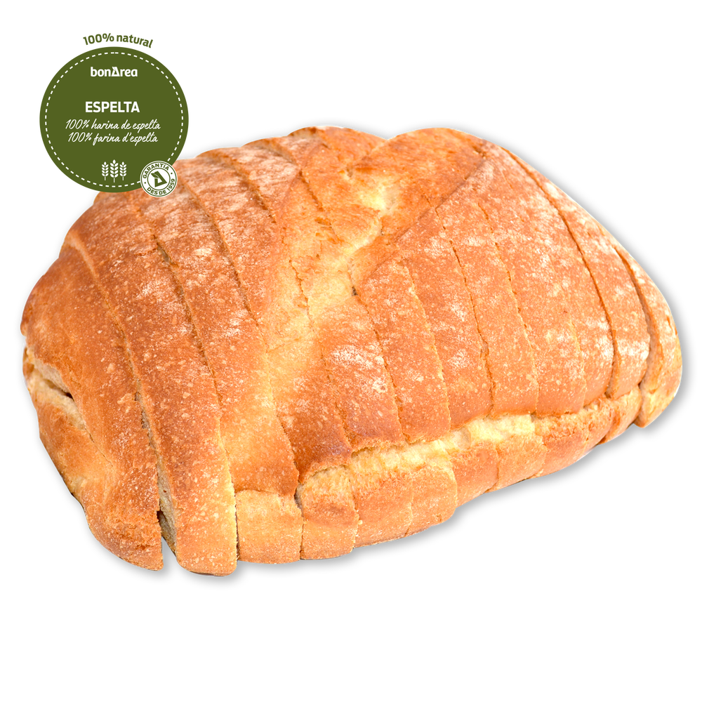 Sin conservantes, 100% natural, es un pan digestivo donde el 100% de la harina es de espelta (tipo de trigo milenario que aporta un sabor y un aroma ancestral). Una vez salido del horno mantiene la textura durante 9 días conservado a temperatura ambiente o se puede congelar directamente con la bolsa y descongelarlo en la tostadora. Recomendamos consumirlo combinado con nuestra selección de embutidos y quesos bonÀrea, o bien para untar con los guisos. Este pan es el resultado de una doble fermentación, de un cuidado especial de la masa durante todo el proceso de elaboración y de un horneado simulando el efecto de la suela con piedra refractaria.