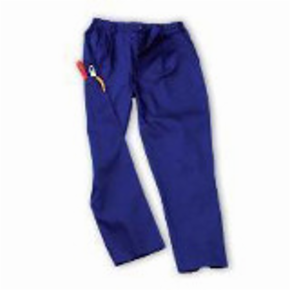 Pantaln, con bolsillos laterales. Algodn 100%, en colores marino y azulina. Tergal (65% pol.-35% alg.), en colores azulina, marino, gris, beig, granate.
