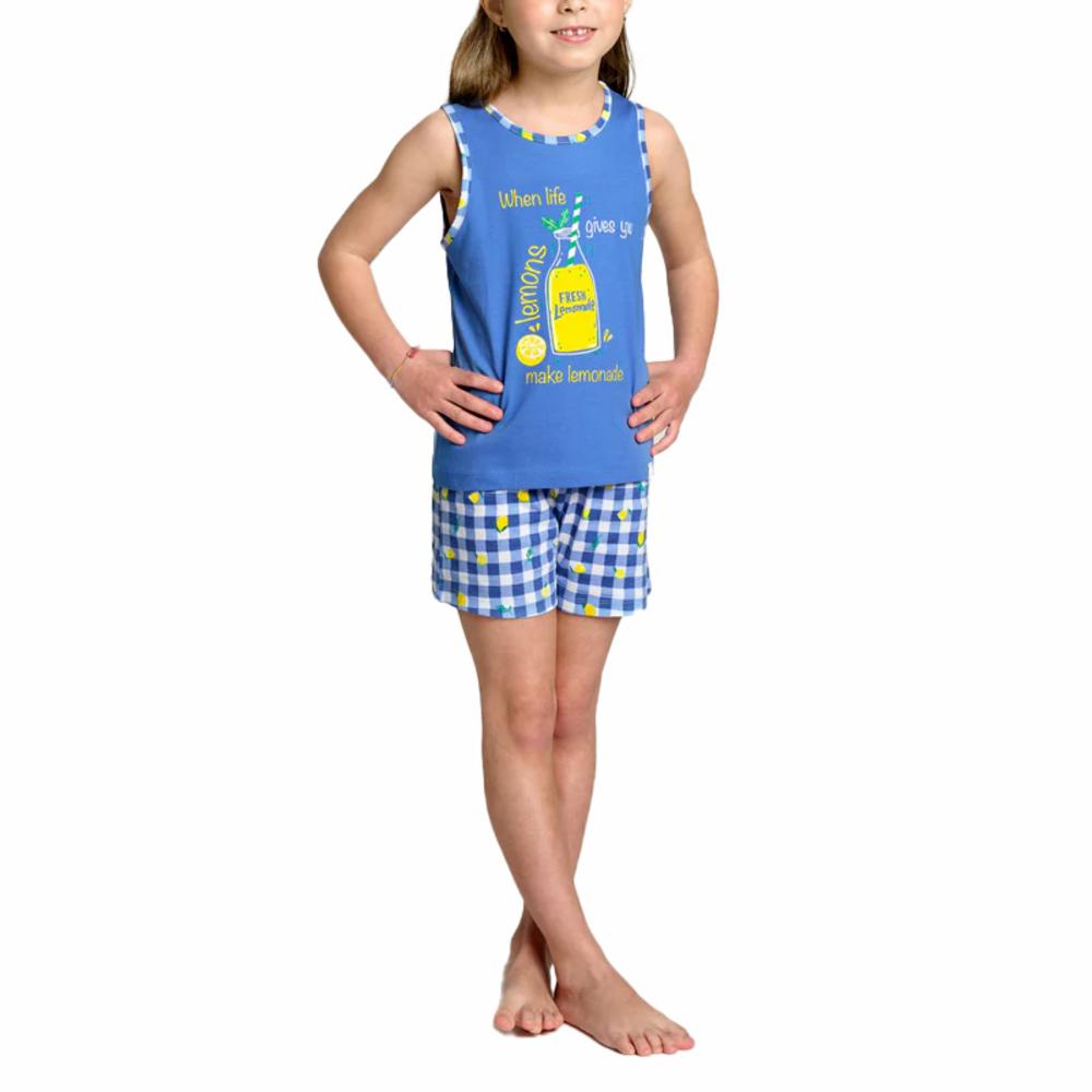 Pijama corto infantil en algodón. Camiseta de tirantes con diseño Lemonade y pantalón corto a juego, ideal para las noches de verano. 100% Algodón