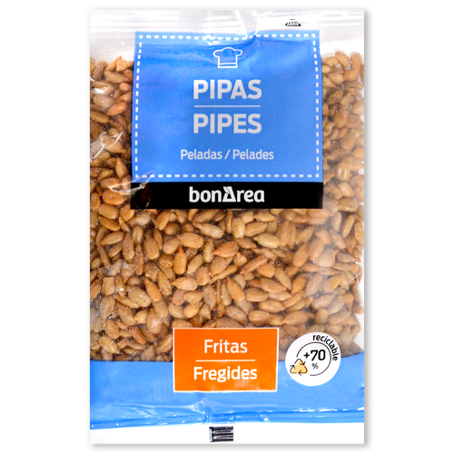 Pipas peladas de girasol, aceite refinado de girasol y sal. Puede contener trazas de FRUTOS SECOS, CACAHUETES, LECHE, GLUTEN, SULFITOS, SOJA, SÉSAMO y HUEVO.