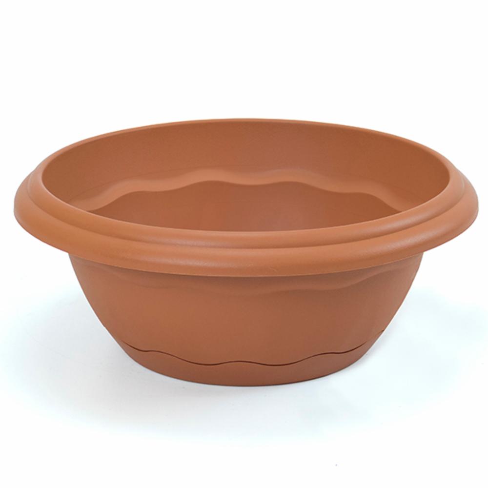 Colección tradicional de macetas bajas de plástico. Su alta resistencia a los rayos solares y robustez permiten su uso en espacios al aire libre.