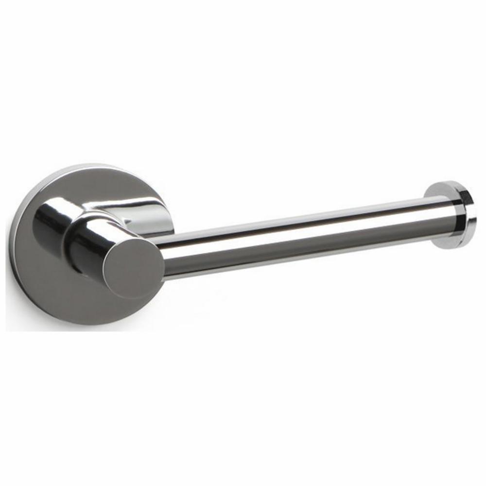 Portarrollos sin tapa para el baño. Coloca el papel higiénico en este portarrollos de zamak con acabado cromado. Su instalación es sencilla con tornillos y tacos que vienen incluidos. Es 100% inoxidable.