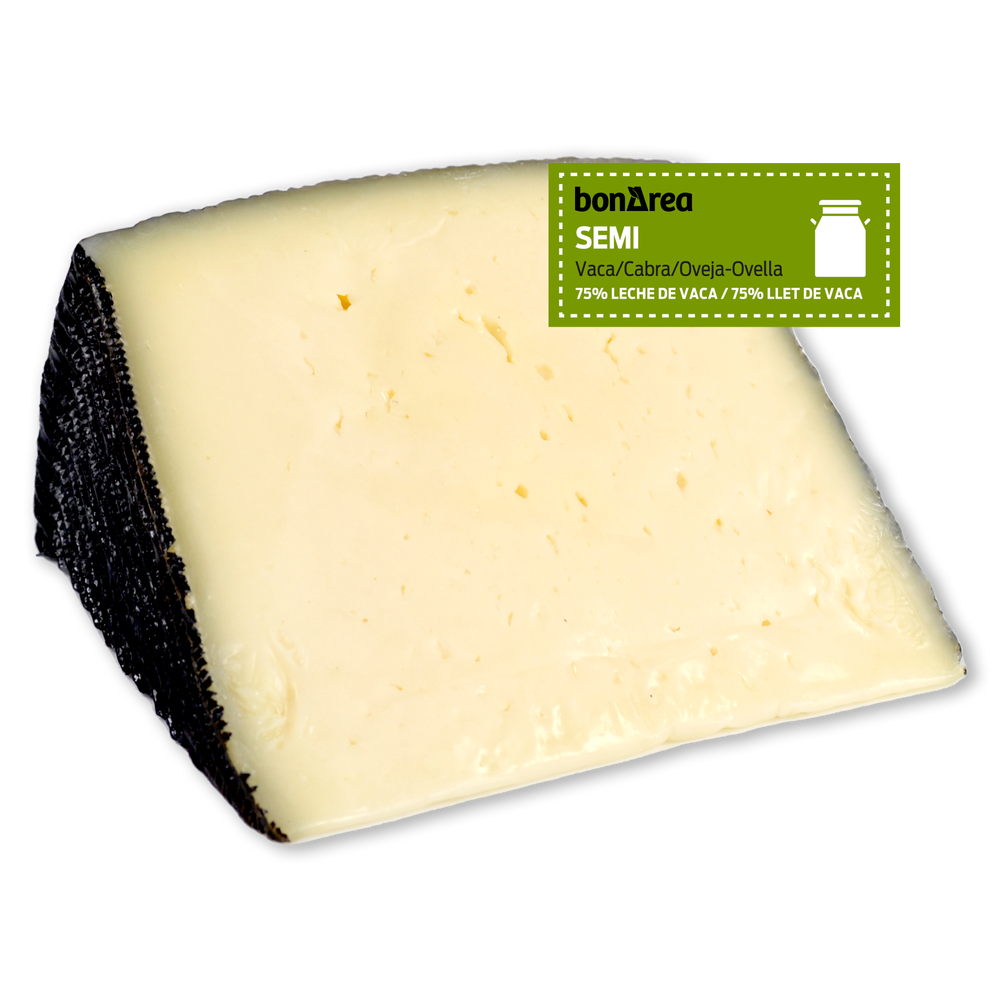 Queso semicurado elaborado con leche fresca pasteurizada de vaca, cabra y oveja. Tiene un gusto suave y aroma láctico y es ideal para hacer bocadillos y tapas.