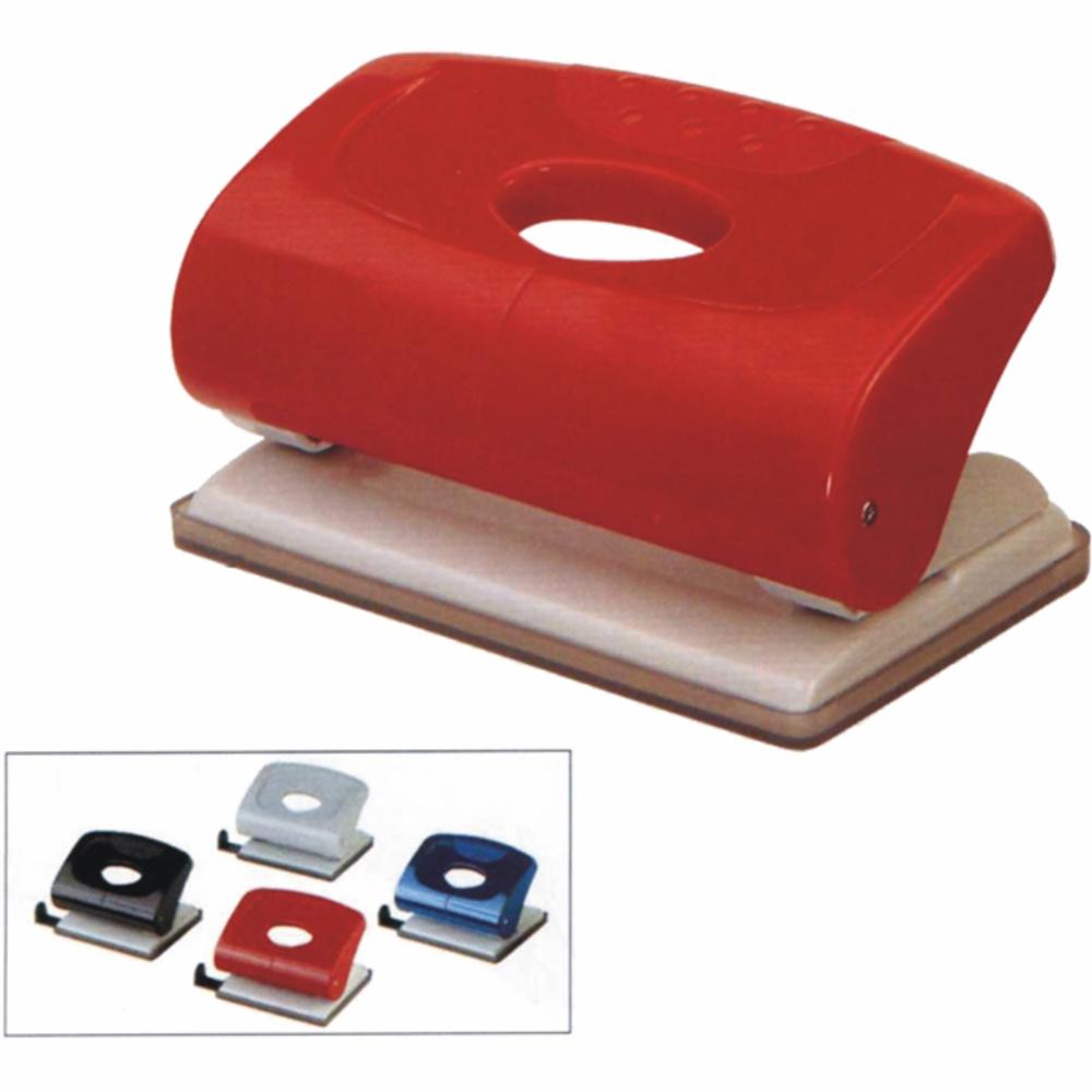 Perforadora de 2 punzones de 5 mm. Ø. Metálico y pintado. Perfora hasta 20 hojas. Atractiva gama de colores azul, rojo, negro y blanco. El color dependerá de las existencias existentes en el momento de preparar el pedido.