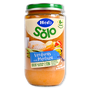Verduras y legumbres (40%) (zanahoria (14%), tomate (10%), judías verdes (6%), cebolla, guisantes (3%), apio), patata (30%), leche entera (11%), merluza (8,5%), agua de cocción, aceite de oliva virgen extra (2,1%). Sin gluten.Más 8 meses.