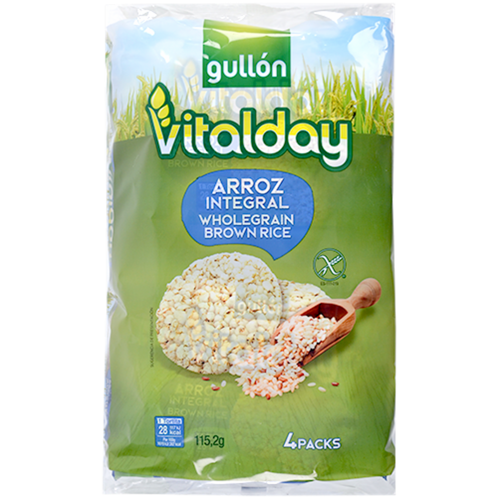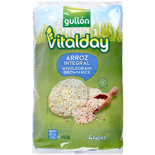 Tortitas de arroz integral, sin gluten Vitalday Gullón. Aptas para celiacos.