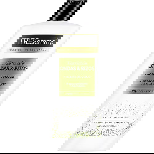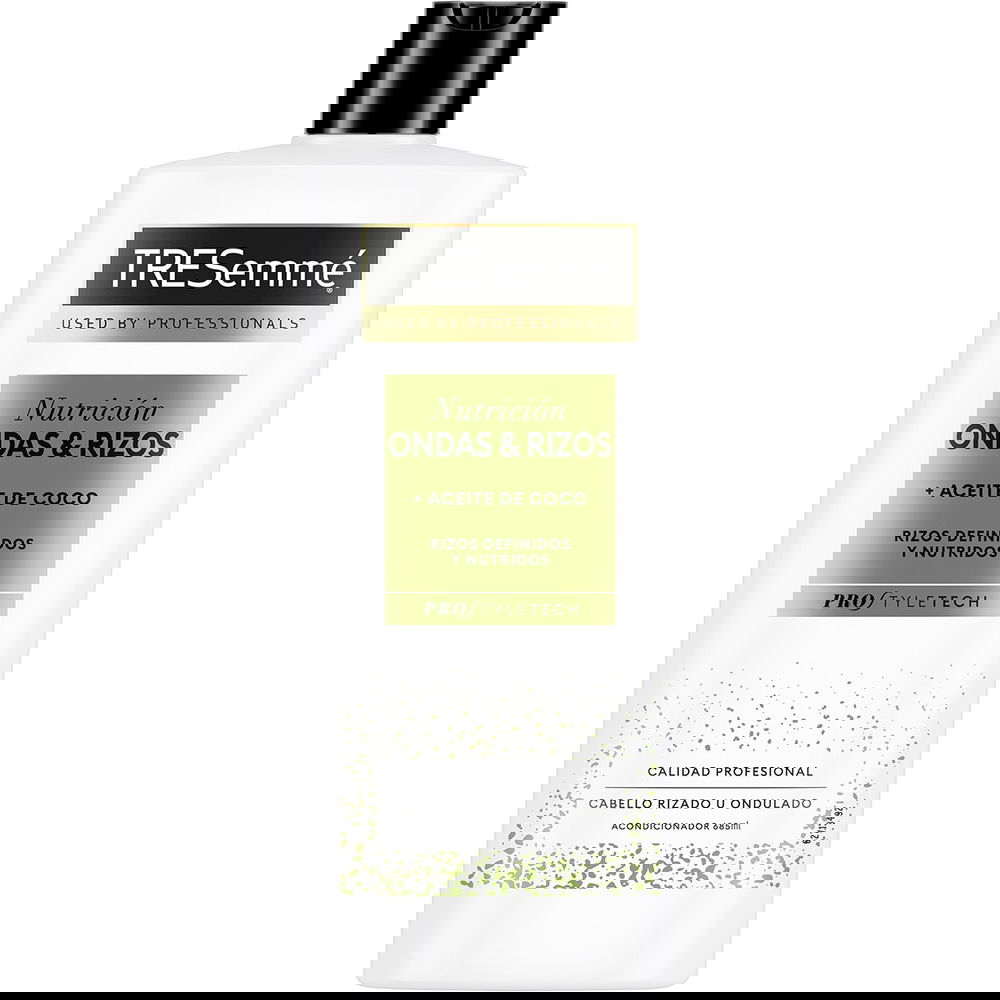 con el Acondicionador Nutrición Ondas & Rizos de TRESemmé, una auténtica joya para cabellos rizados y ondulados. Este acondicionador de calidad profesional está especialmente formulado para nutrir profundamente tu melena, gracias a nuestro innovador sistema Nutrición Ondas y Rizos enriquecido con Aceite de Coco, dejando tus rizos definidos y radiantes.