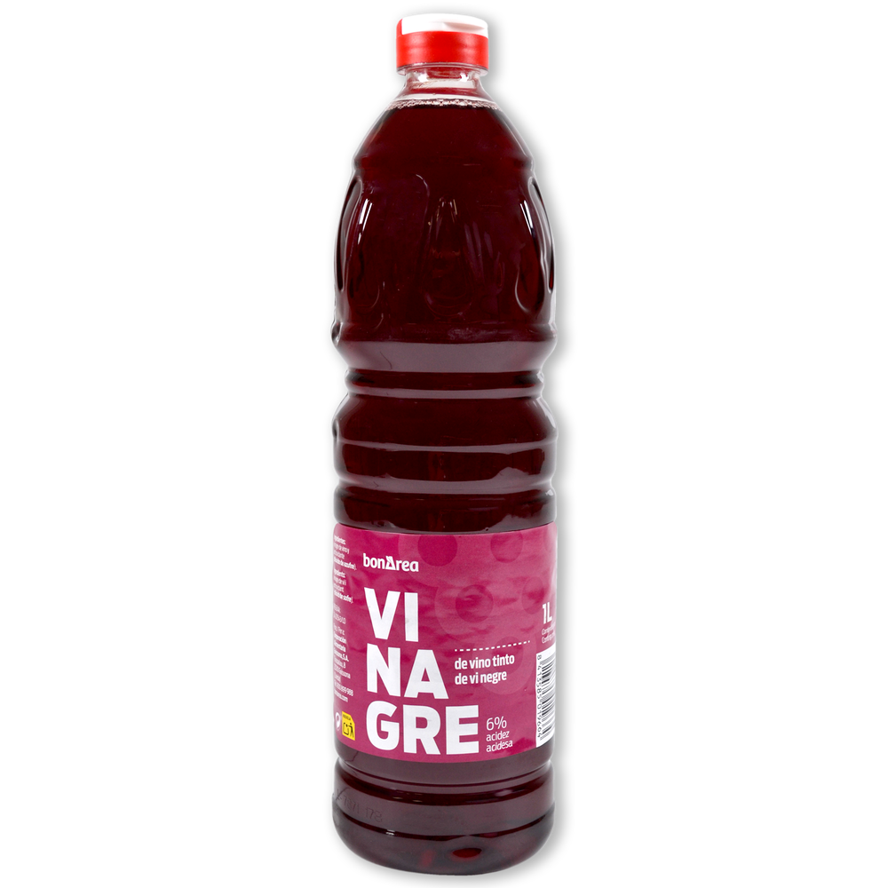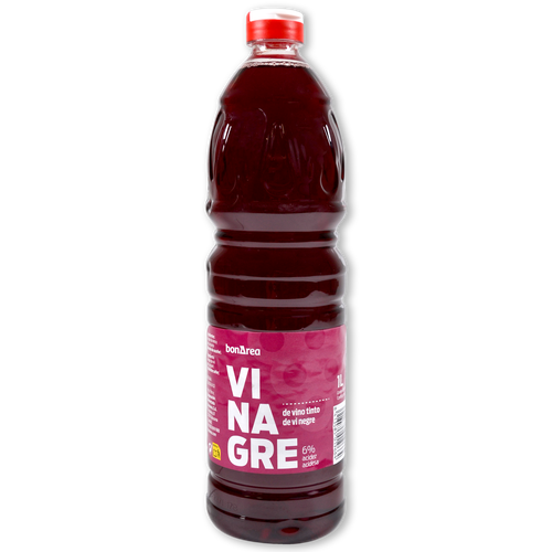 Vinagre de vino tinto en formato de botella Pet 1 litro. Ideal para aliñar ensaladas.