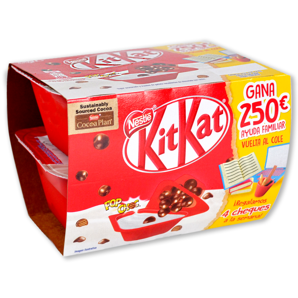 Yogur azucarado y trocitos de galleta recubiertos de chocolate con leche