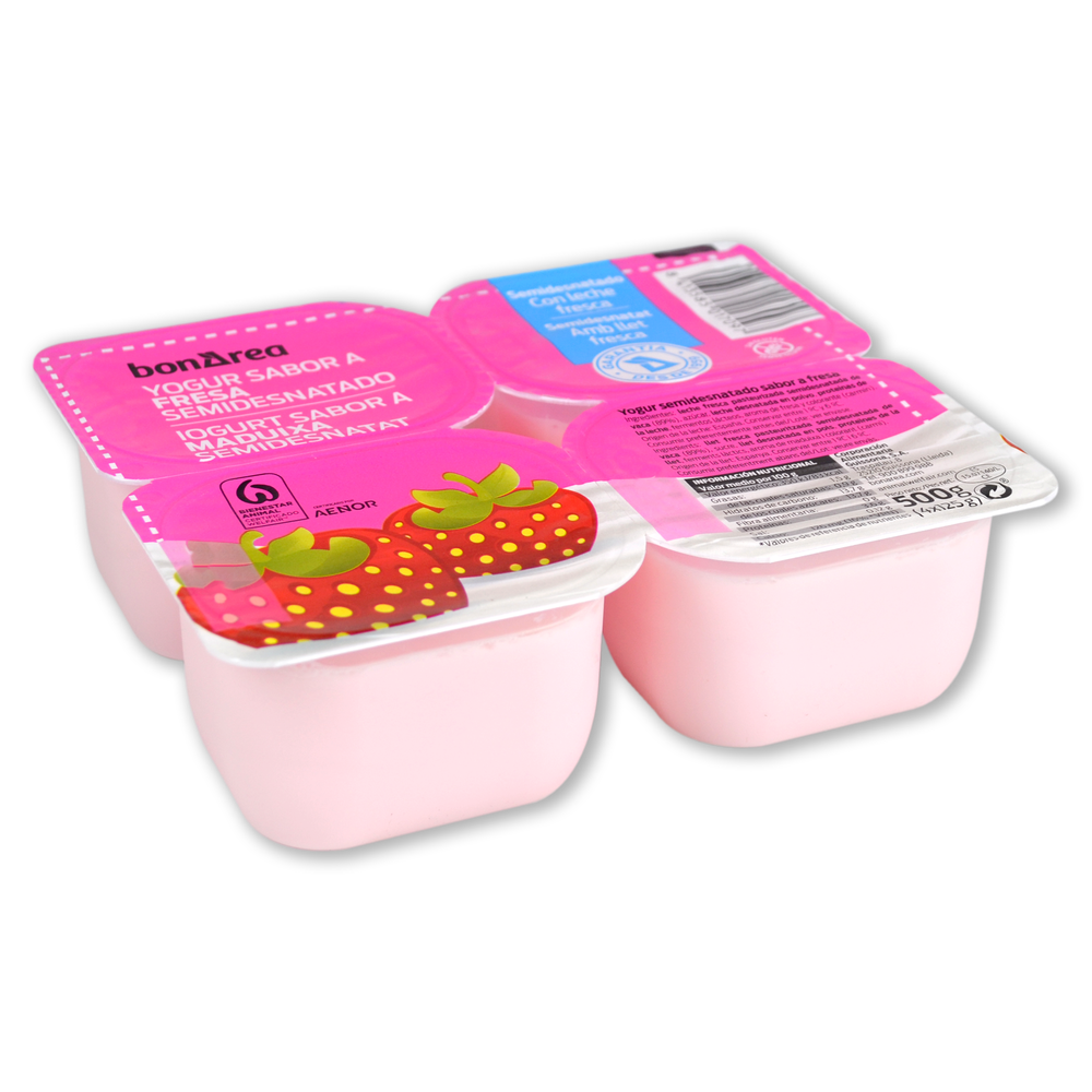 Yogur semidesnatado sabor fresa 4 u. de 125 g